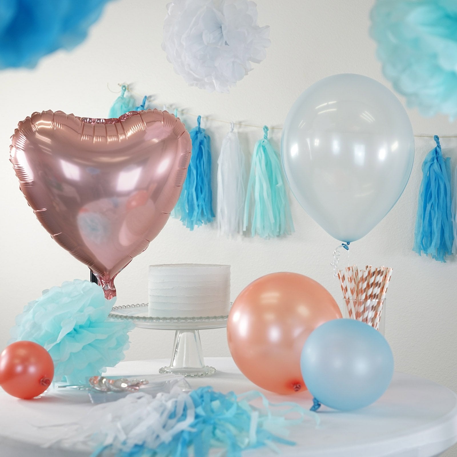 Get you party started in no time with our all in one DIY Party Decoration Kit. Make a fun addition to decorations for baby showers, bridal showers, teen's bedroom, school event, wedding reception, birthday party, holiday functions, and family get-togethers. Cheerful colors and festive glitz of these decorations will instantly bring celebratory feel to any space. This Party Decoration Kit includes everything you need to rock any party; Merry Mylar Foil and Latex Helium Balloons, Peppy Pompoms, and Pretty Tassels. With the easy installation instructions included in the kit, you can conveniently string the decorations up to create wonderful décor in no time. Design dreamlike Backdrops, Photo Booths, Wall Decorations, Table Decorations, Entrance Effects, Party Banners, Arches, Columns, Tree Decorations, and more!