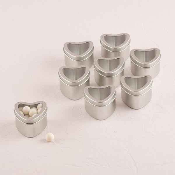 Pack your heart-felt sentiments and sweet treasures with love in these darling heart shaped tin favor holders. Your guests’ hearts will surely brim with utmost delight and glee on receiving warm gestures of gratitude in these shiny tin hearts. Fill these with assorted Jordan almonds, mints, gummy drops, or any other affectionate surprise and adorn with cute ribbons, adhesive diamond stickers, personalized tags or doting notes to make a truly heartwarming party favor. These sleek heart tin favor boxes feature a silver matte finish with a clear acetate cover. The transparent cover lets the colorful surprises and delectable delicacies packed inside lure the guests with their mouthwatering scrumptiousness.