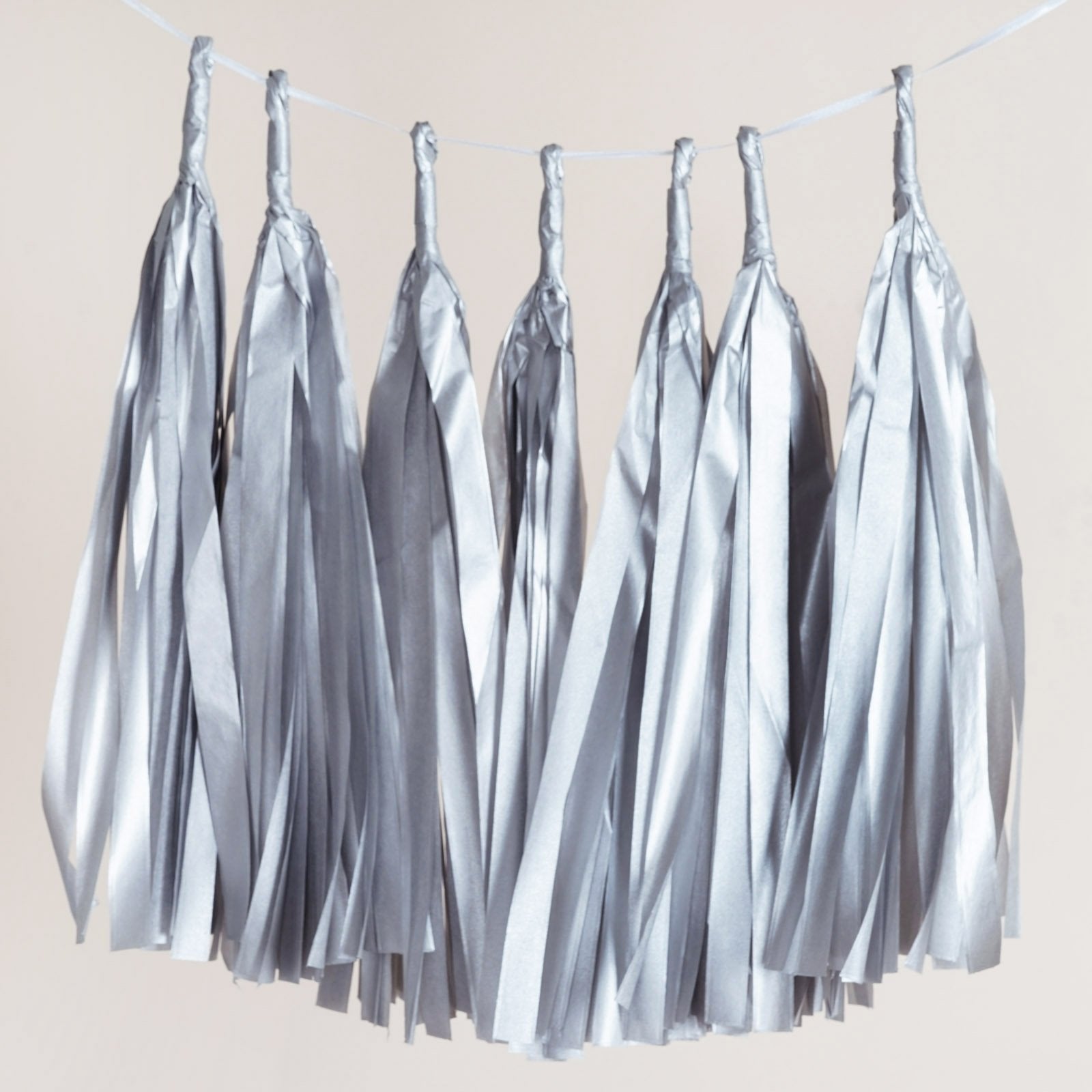 12 PCS Metallic Silver Tissue Paper Balloon Tassel Garlands